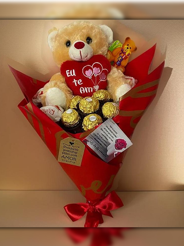 Buquê de chocolates Ferrero Rocher + pelúcia